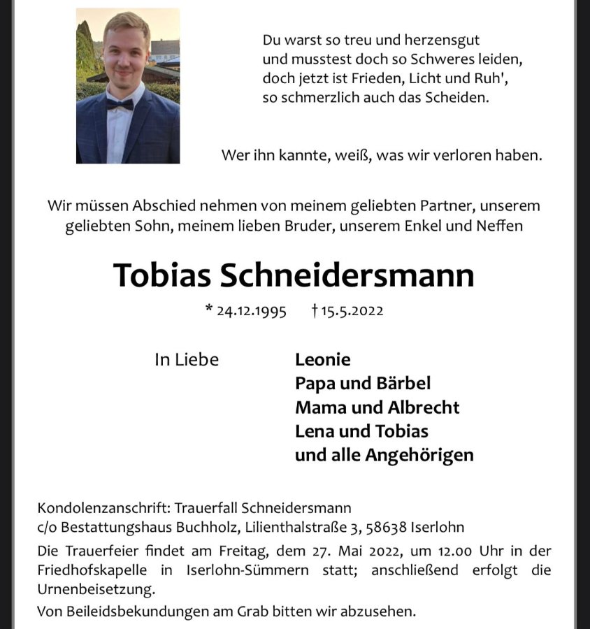 Es war mir eine große Ehre dich auf diesem steinigen Weg begleiten zu dürfen. Du hast so viel Stärke und Kampfgeist ausgestrahlt, dass ich dich jedes Mal bewundert habe. Du selbst hast dir nie etwas vorgemacht, hast dennoch allen Leuten ein gutes Gefühl verspüren lassen.